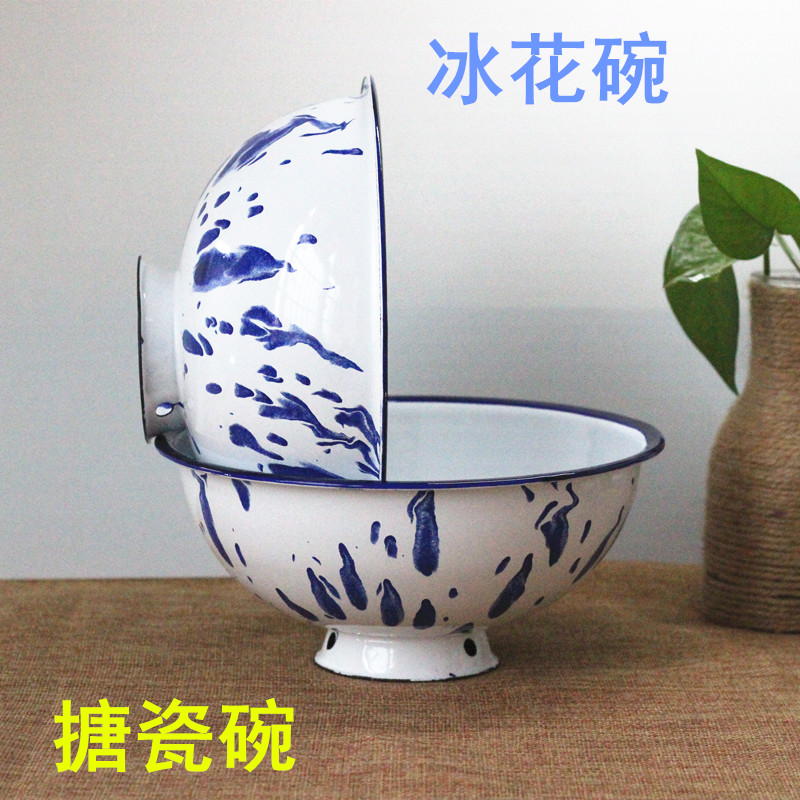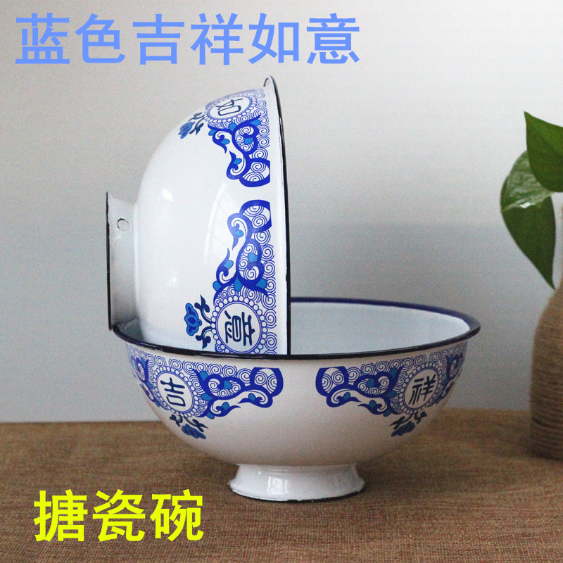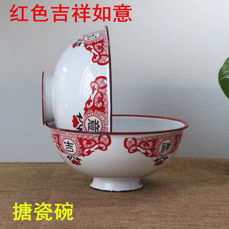 Thicken enamel bowl porcelain bowl high-foot dishwasher bowl old nostalgia tableware anti-hot sugar bowl porcelain bowl