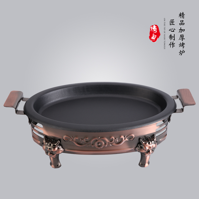 Grilled fish stove commercial oval cast iron grilled fish plate dining room alcohol charcoal grill non-stick Zhuge grilled fish pot household