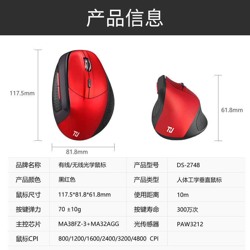 THU Vertical Slide Mouse Ergonomics Desktop Notebook Office Slip Rat Cable Infinite Dual Mode New Product Upgrade