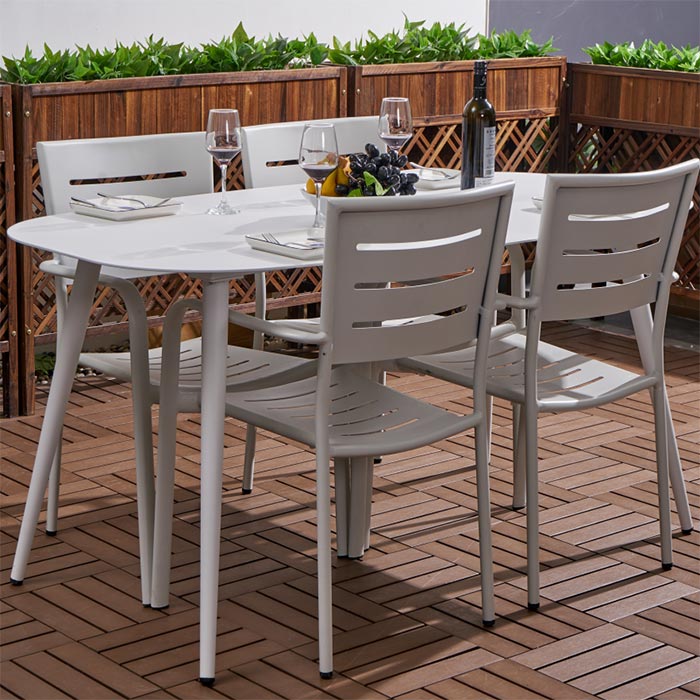 2 4M Rip long table with 6 chairs (white) 1 8M Rip long table with 6 chairs (white) 1 8M Rip long table with 6 chairs (champagne) 1 8M Rip long table with all aluminum 4 chairs (