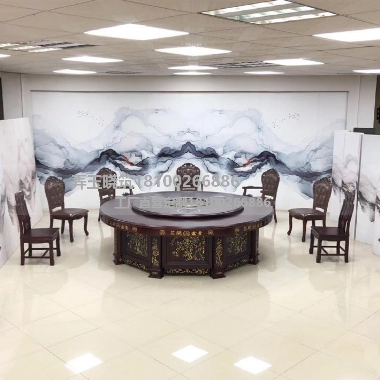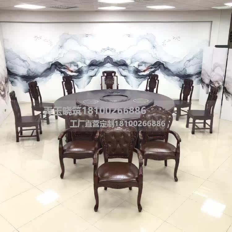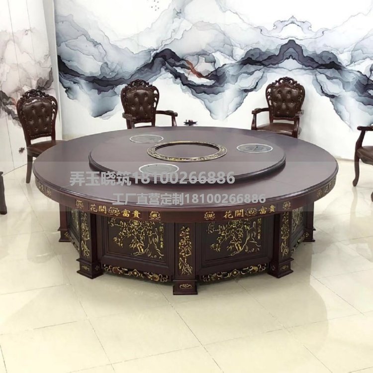 Electric Dining Table Hotel Large Round Table Full Solid Wood Engraving Custom Upscale Luxury Clubhouse Villa Large Dining Table