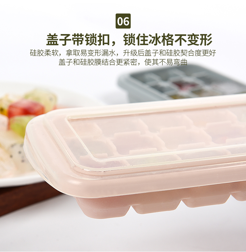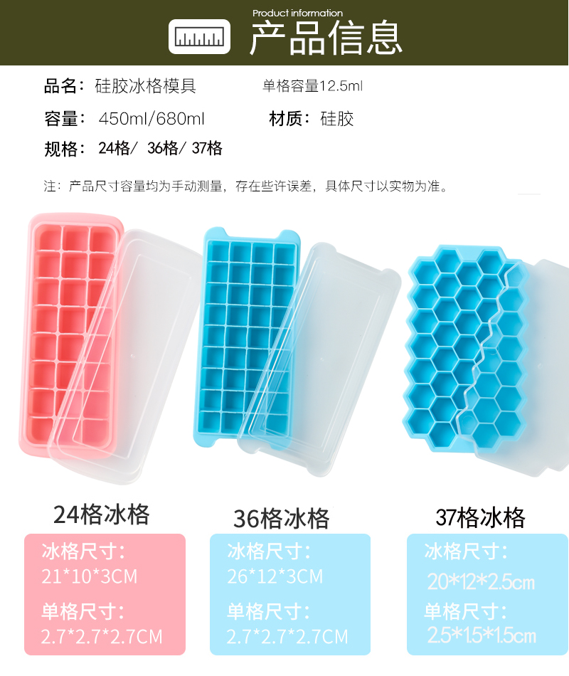 Food grade silicone (Beige 24 grids) with lid Food grade silicone (Blue 24 grids) with lid Food grade silicone(green 24 grids)with lid Food grade silicone (Pink 24 grids)