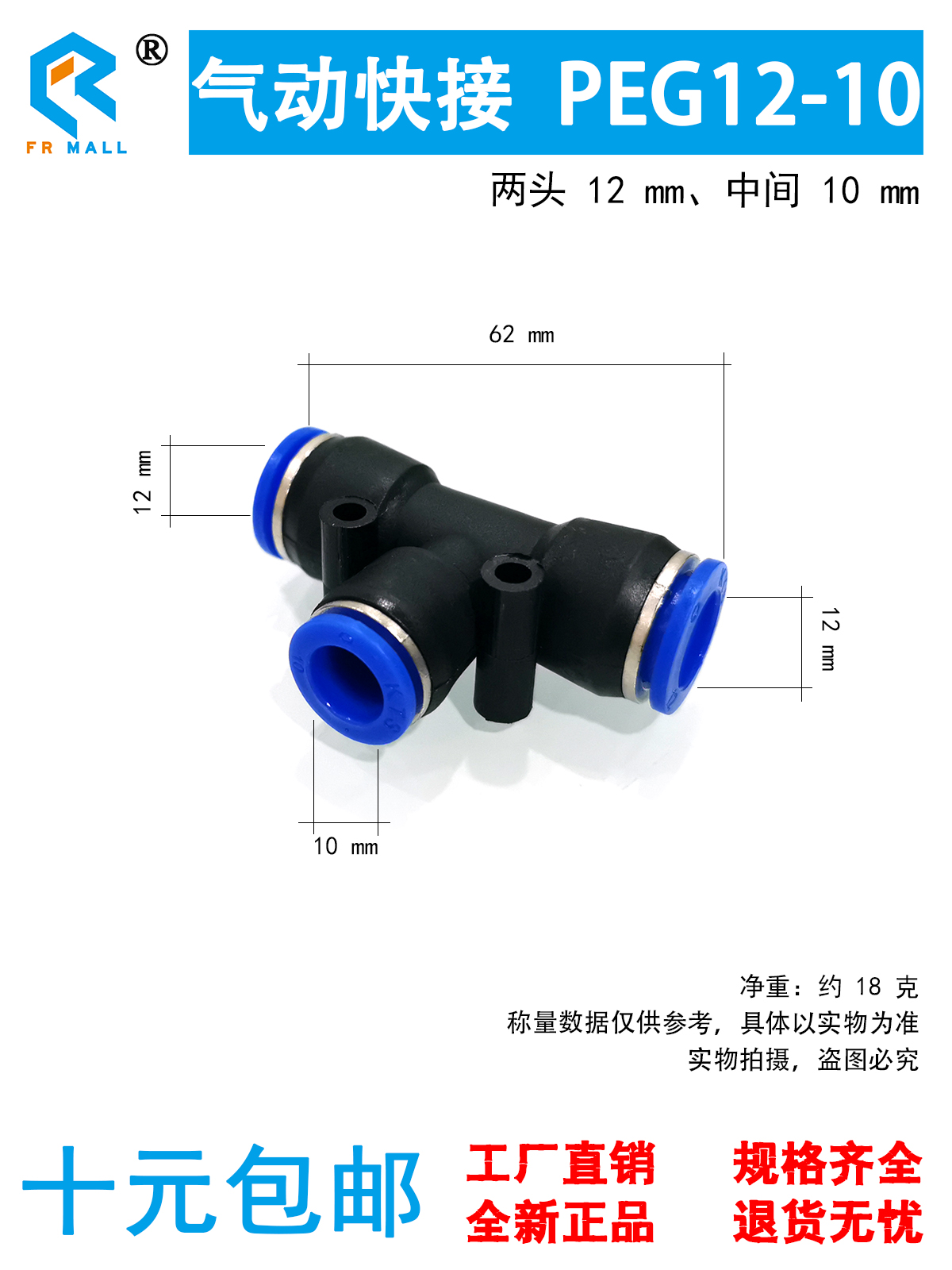 PEG6-4 trachea pipe rapid plug head 10-8T type diameter three-way size branch one division 16-14-12-10