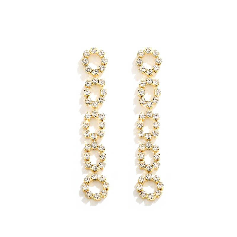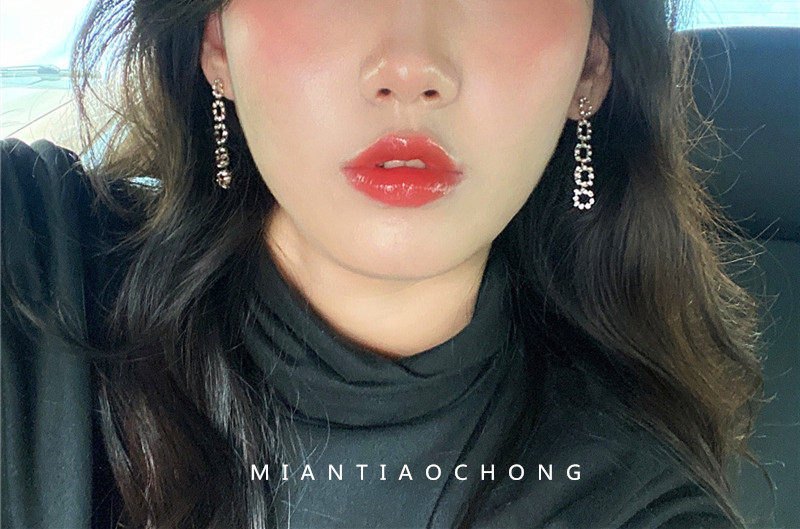 S925 silver needle suitable for large face earrings Long version wild zircon small square hollow tassel temperament drop earrings ear clip