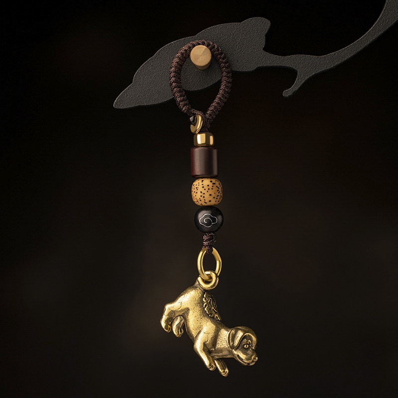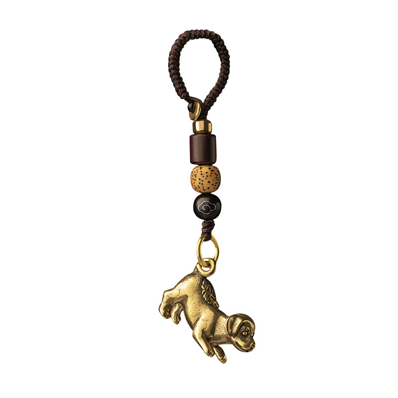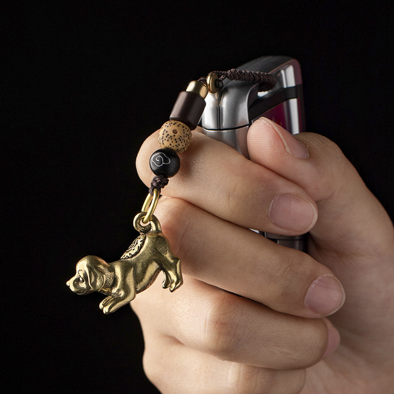 Brass Duosheng Shaodiac Dog Zodiac Car Key Button Pendant Ancient Wind Locomotive Pendant Handmade Accessories
