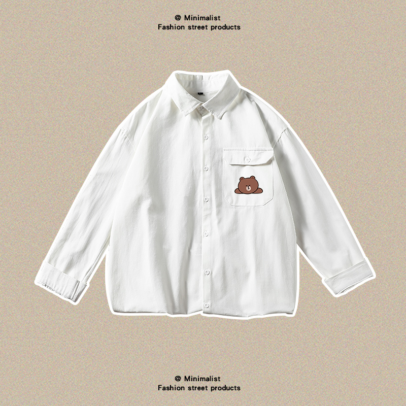 Small Bear Joint Superior Feel Shirt Woman Casual 100 lap design Sensory Salt-Inch Shirt Japan Long Sleeve Tooling Port Wind