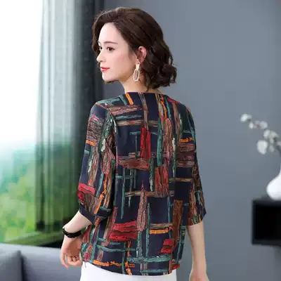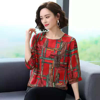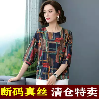 Mother summer clothes heavy silk coat female middle-aged mulberry silk middle sleeve large size loose T-shirt fragrant cloud yarn small shirt t