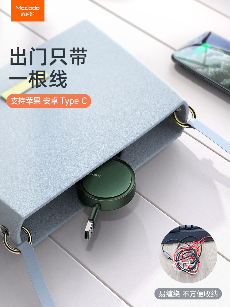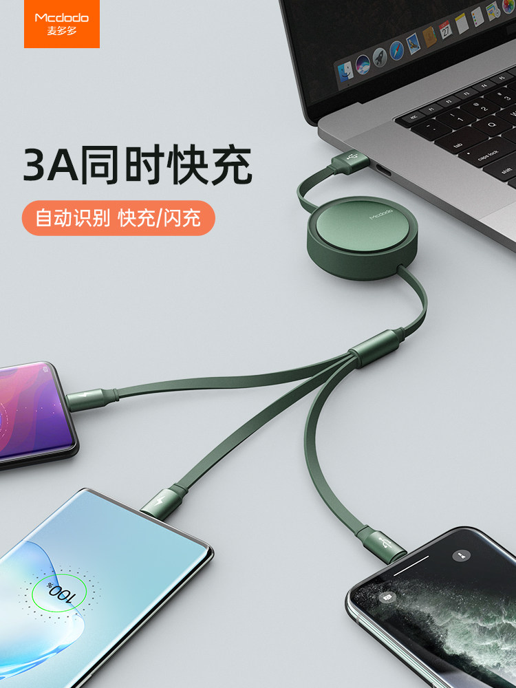 Mai Duoduo three-in-one charging one-to-three telescopic data cable fast charging mobile phone tablet universal PD short mini portable