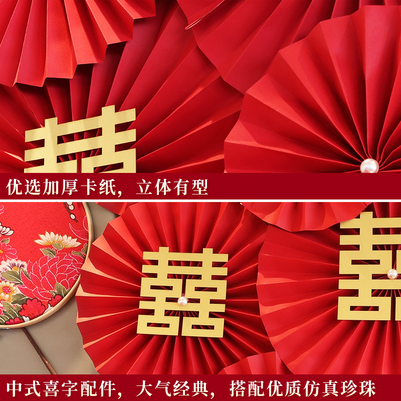 Round Xi Butterfly paper fan flower 6-piece set of pearl paper fan flower 6-piece set of round-happy paper fan flower 6-piece set of pearl paper fan flower 12-piece set (main picture) happy wedding set (hot-selling) we get married