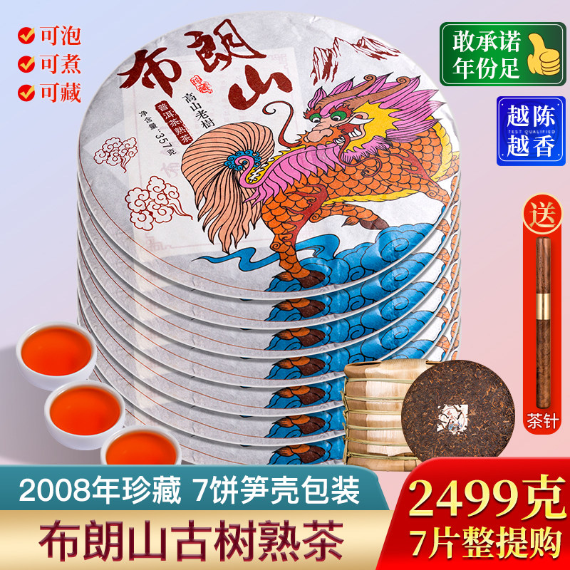 Tea Taste 2008 Brown Mountain Pu'er Tea Cooked Tea Cake Tea Yunnan Qizi Cake Tea 7 Cakes Whole Purchase 2499g