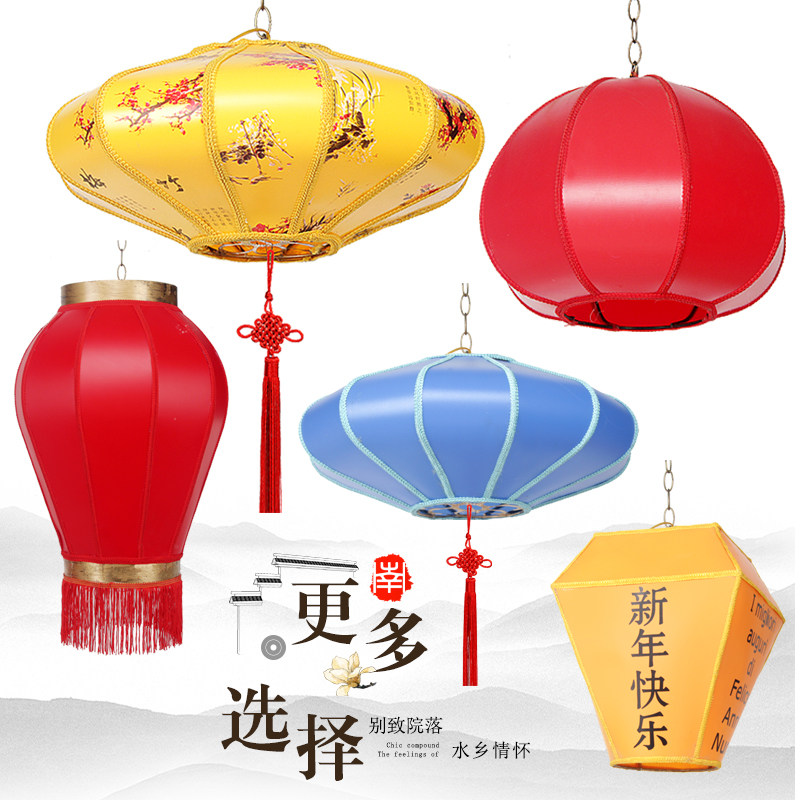 Chinese chandelier big red antique style hand-painted advertising special-shaped sheepskin lanterns hotel restaurant living and dining room special-shaped customization