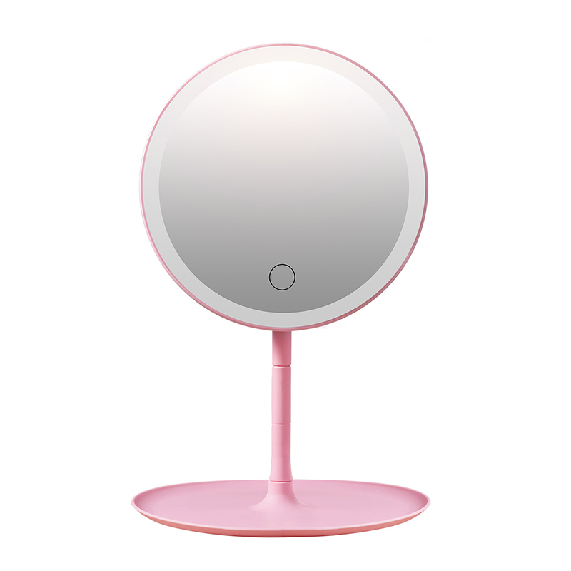 Orunzhe charging pink three-color lamp makeup mirror LED princess mirror Dormitory desktop portable makeup mirror