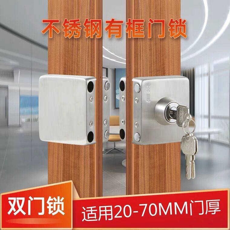 Hengchi with frame glass door lock aluminum alloy door stainless steel wrapping wood door single door double door push-pull shifting door hook lock