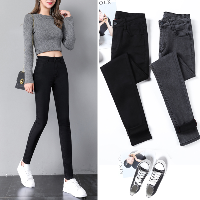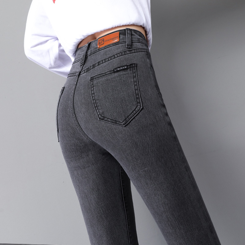 Black jeans women's autumn 2022 Korean version of the new high-waisted elastic tight-fitting slim and high-legged pants eight or nine points