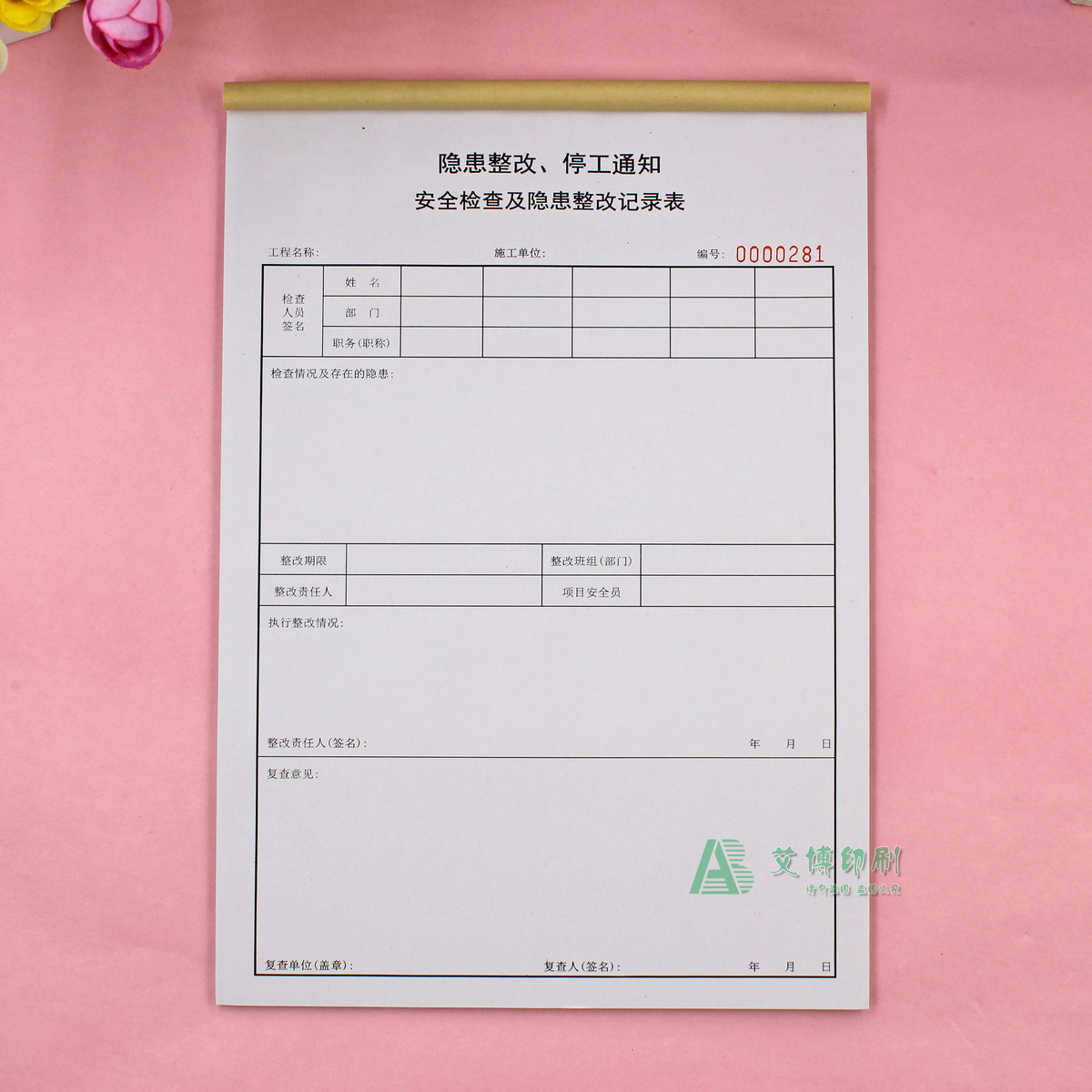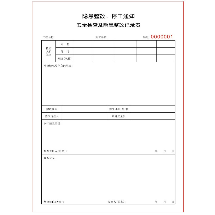 Hidden Hazard Check Rectification Notice Documents Triplex Company Ad Hoc Safety Production Inspection and rectification record This customization