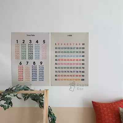 ins Korea with the same waterproof PP multiplication formula 1-100 digital cognitive card wall chart Early education parent-child learning bathroom