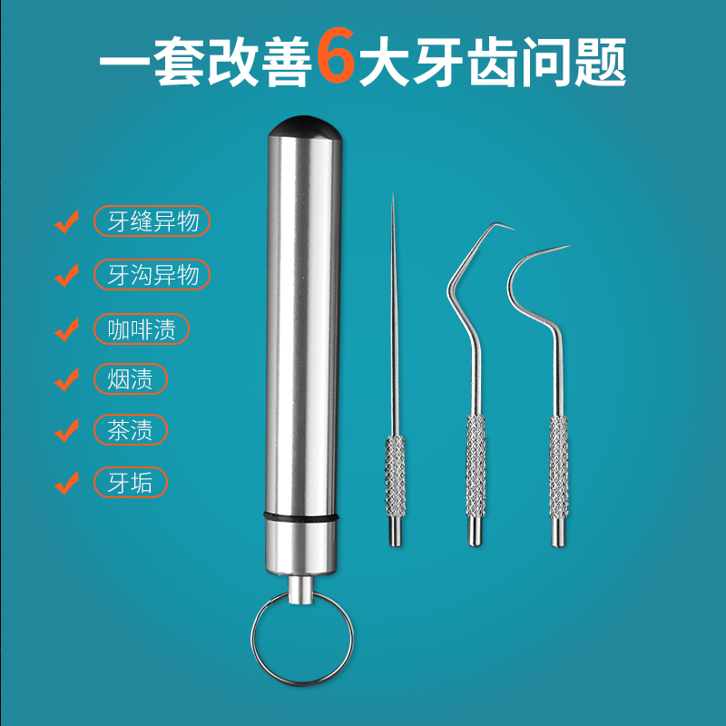 304 stainless steel toothpicks Toothpicks Denture teeth Hook Needle Portable suit Mini cleaning tool Key buckle
