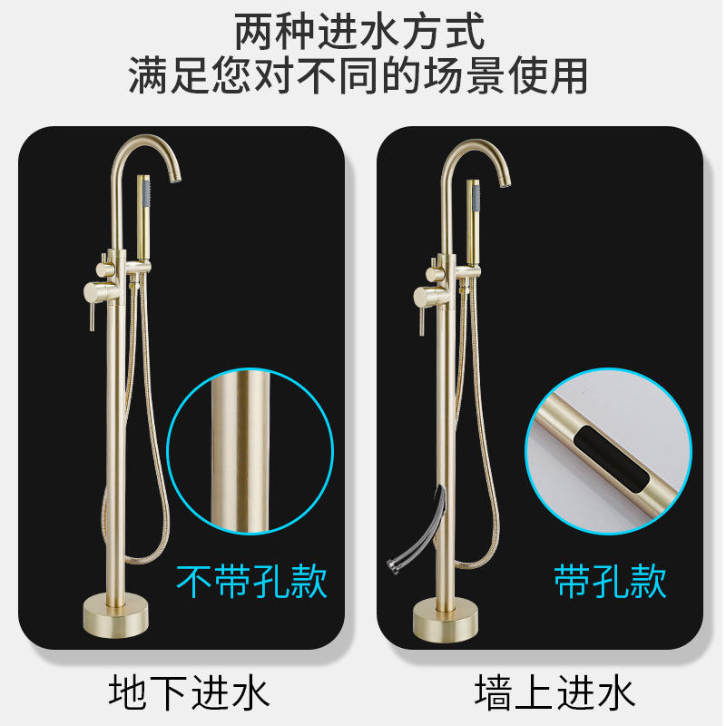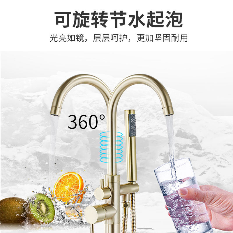 Floor type bathtub brushed gold gold hot and cold faucet barrel column basin independent shower side vertical all copper