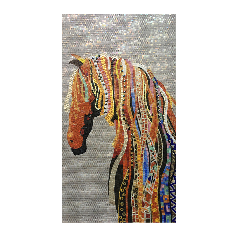Red, yellow, orange, black, white, gray, and black illusion color horse