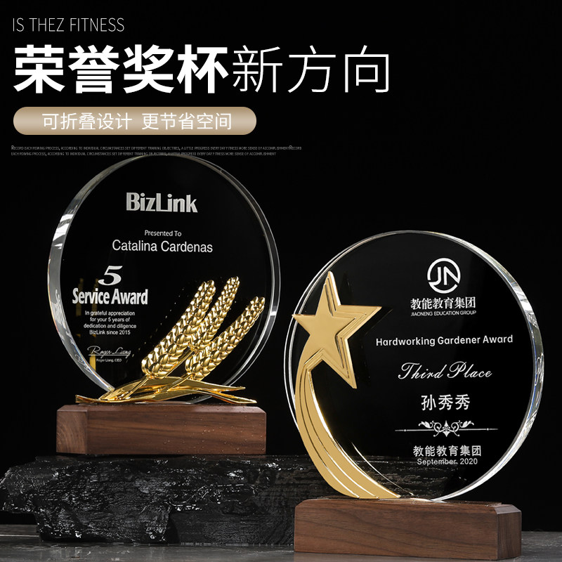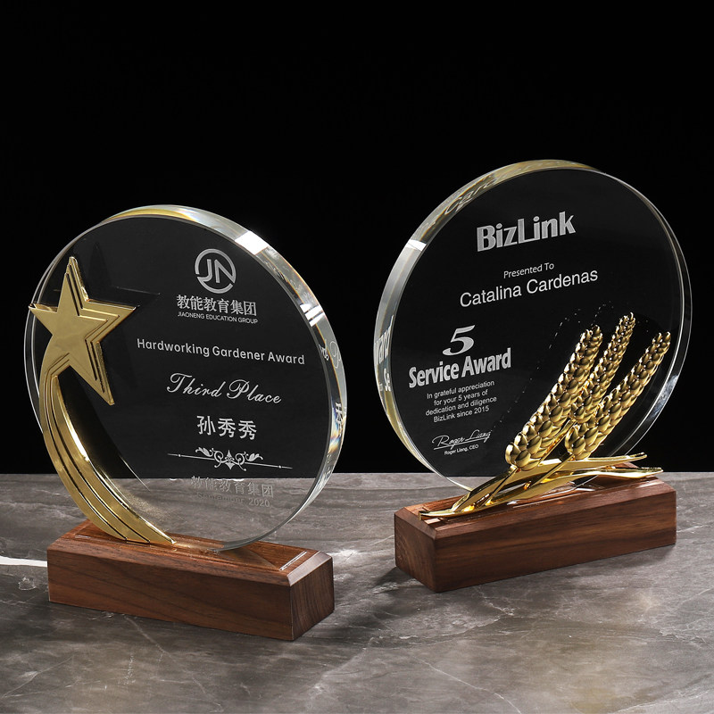 Crystal trophies custom-made creative wheat ears high-end metal trophies prizes volunteer honor medals custom-made