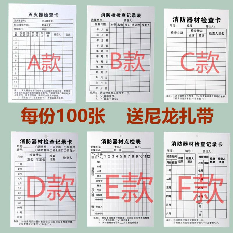 (section A) Fire extinguishers card 100 sheets of delivery ties (B section) Fire hydrants cards 100 sheets of delivery ties (C section) Equipment Universal card 100 sheet delivery ties (D section) Equipment Multi-purpose card 100 ZHANG DELIVERED