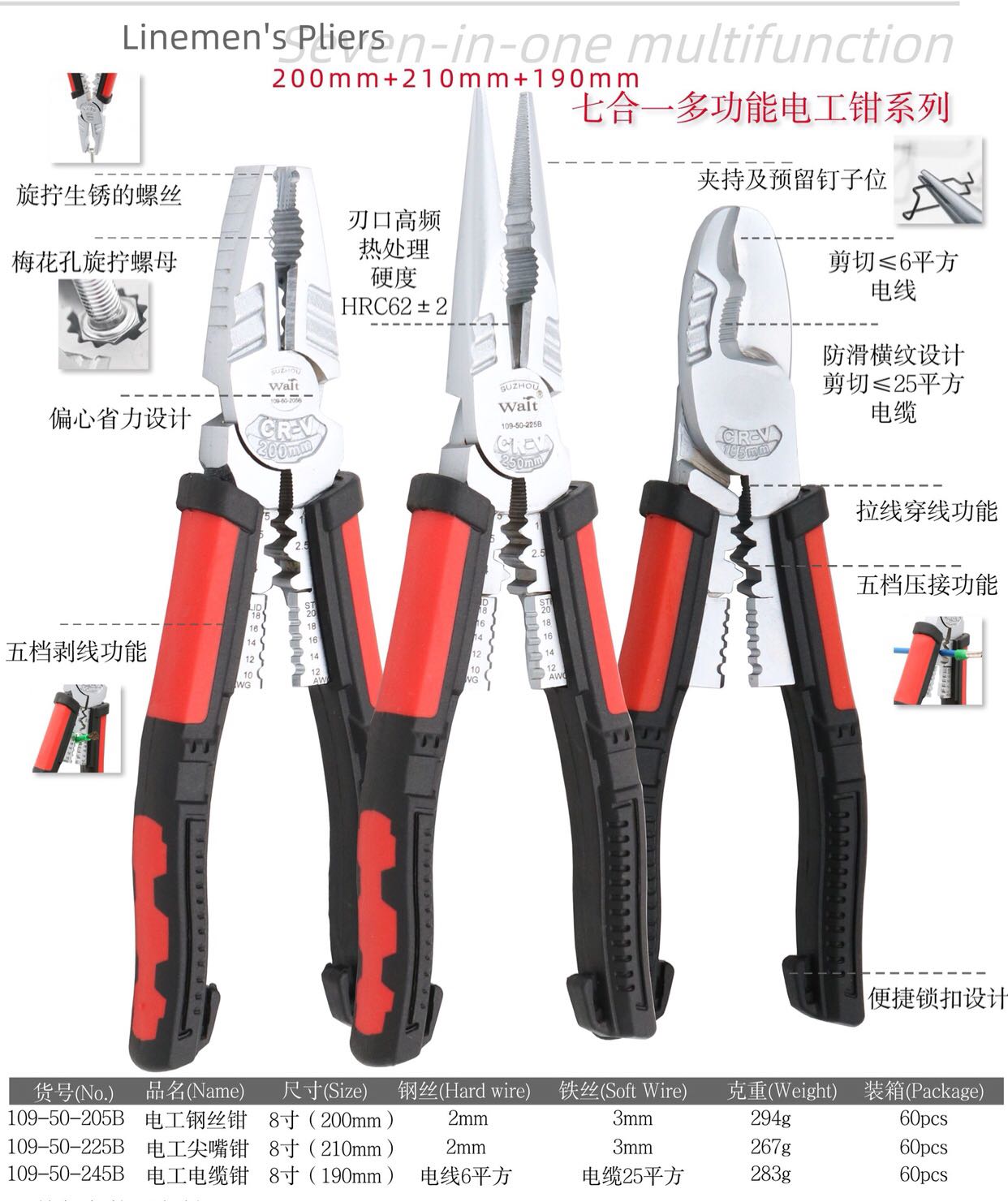 7 in 1 multi-function electrician pliers electrician special wire pliers needle-nose pliers 8-inch vise crimping stripping wire