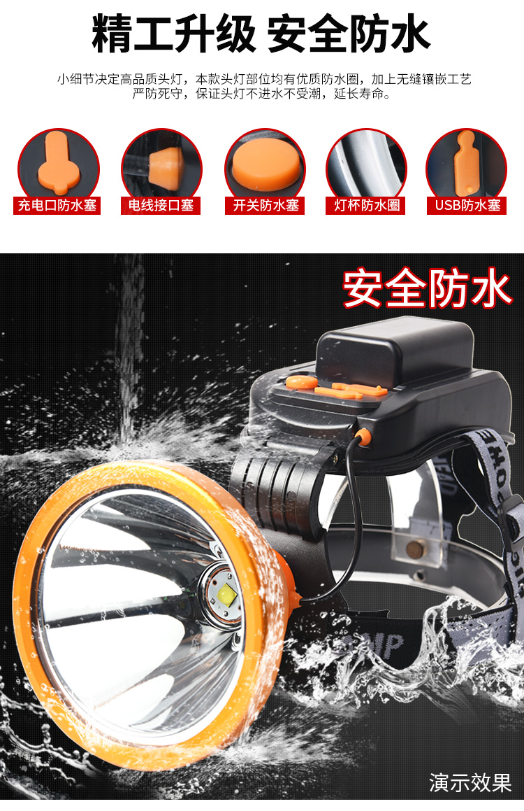 Quad-core P100 outdoor waterproof glare headlight rechargeable head-mounted xenon lamp ultra-bright long-range lighting flashlight