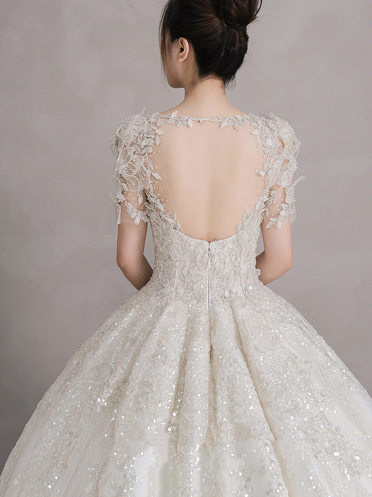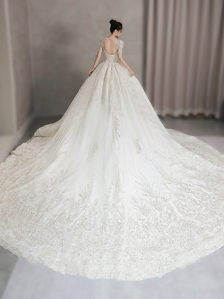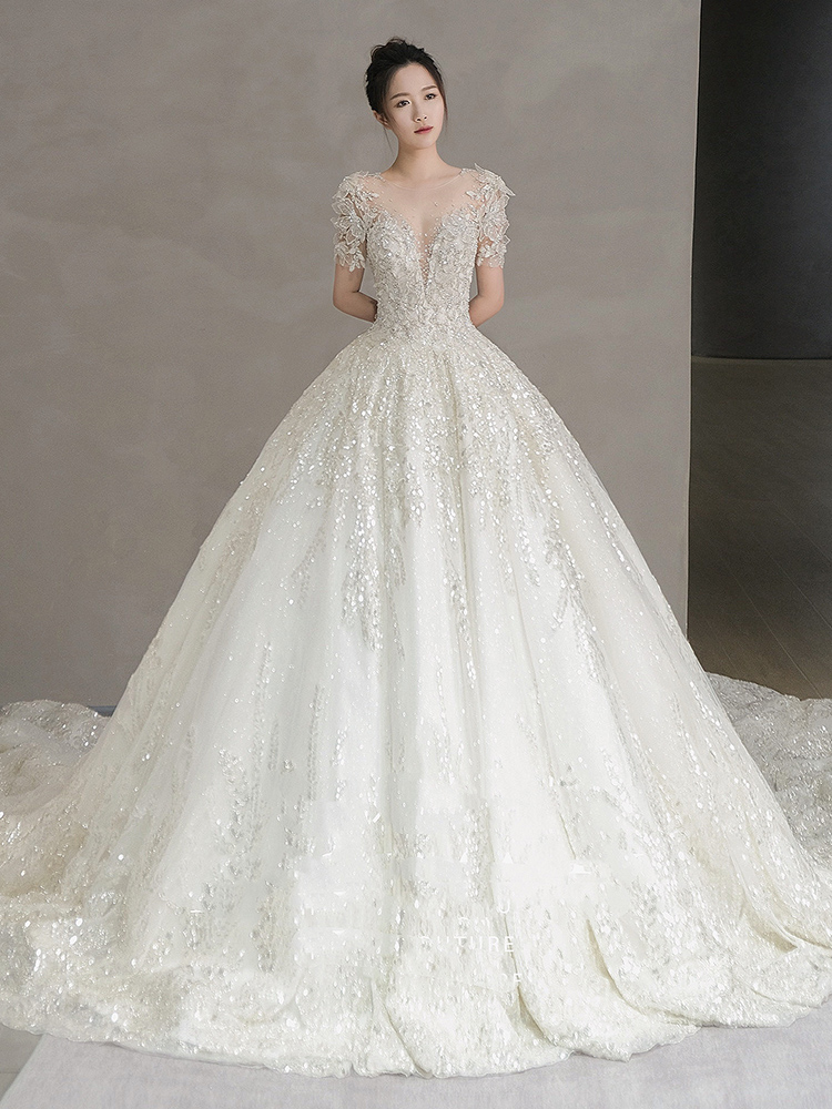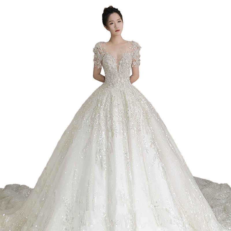 Main wedding dress 2021 new bridal style small sub gown Heavy work extravagant V collar pregnant woman 2022 Advanced texture