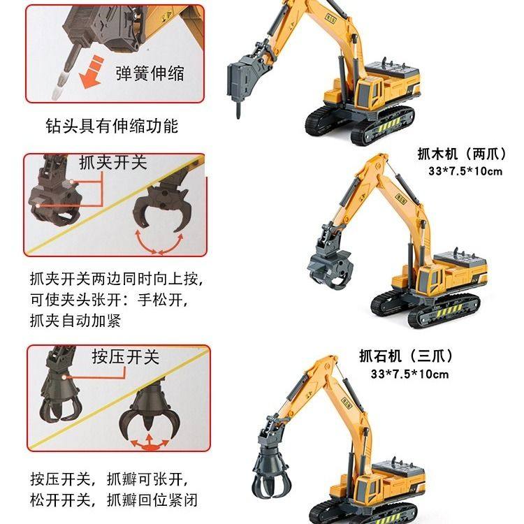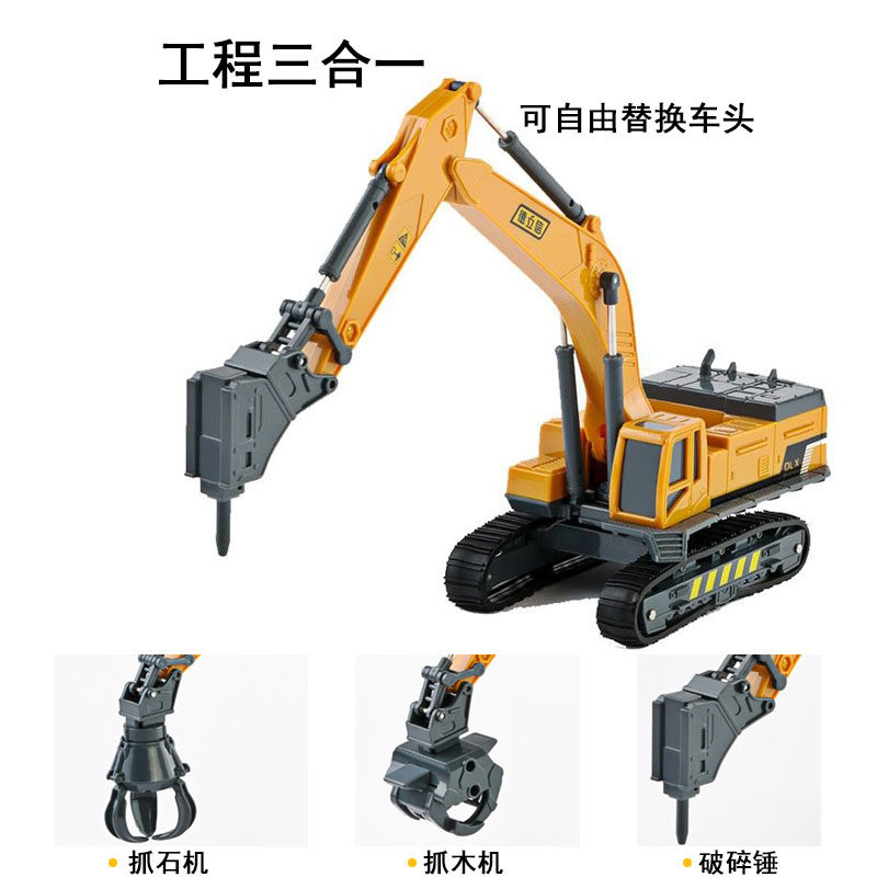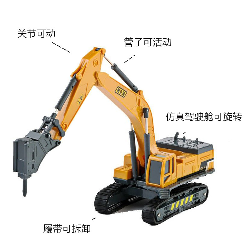 Delixin children's engineering car model Excavator Toy Crushing Hammer Grip Wood Machine Grime Stone Machine Boy Suit Series