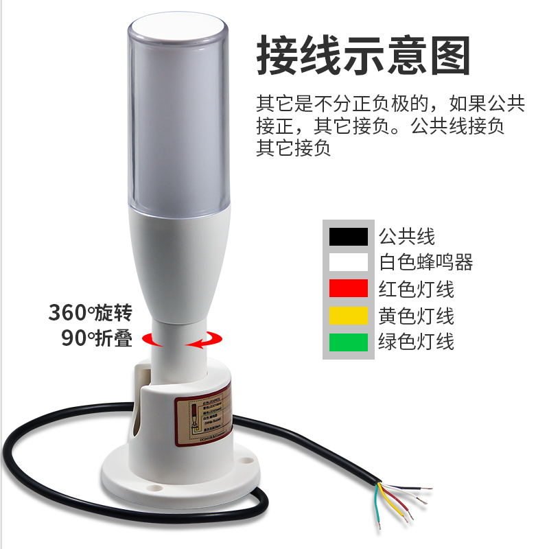 led three-color warning light machine tool lathe light signal indicator light emitting alarm light folding 24V red, yellow and green