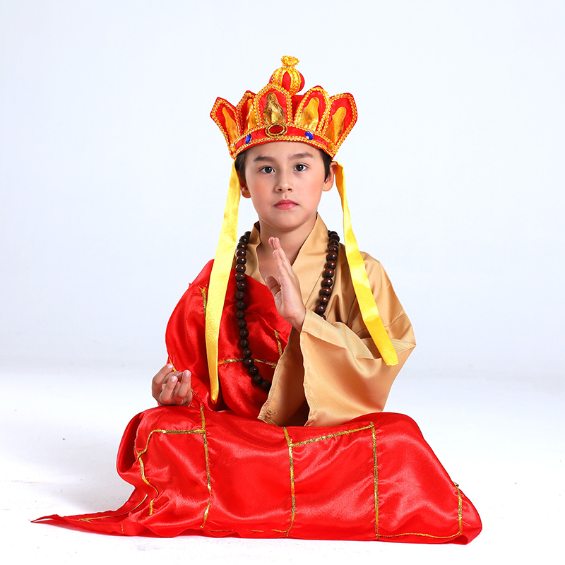 Journey to the West cosplay Tang monk costume children's cassock hat Zen staff Tang monk clothes full set of Halloween costumes