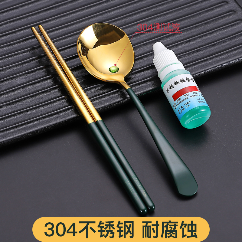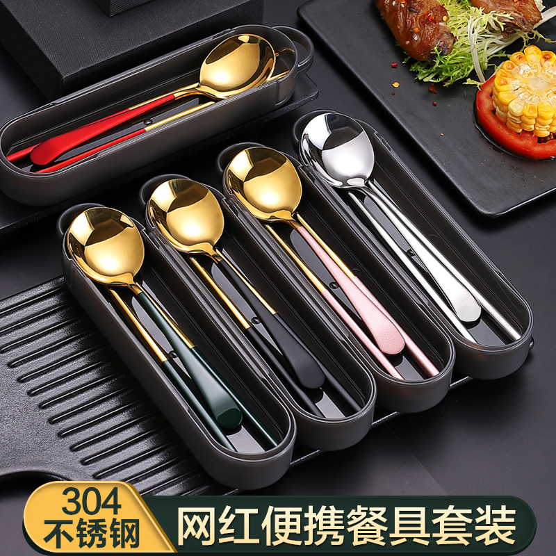 304 stainless steel chopstick spoon single three-three-style dress mesh red portable cutlery containing box student cute outer band