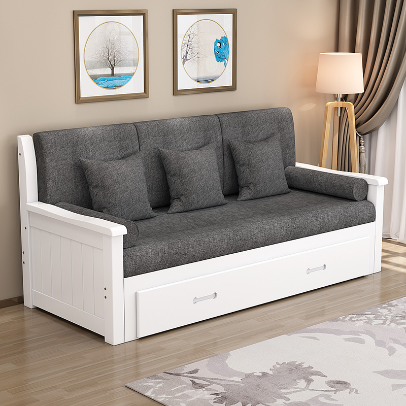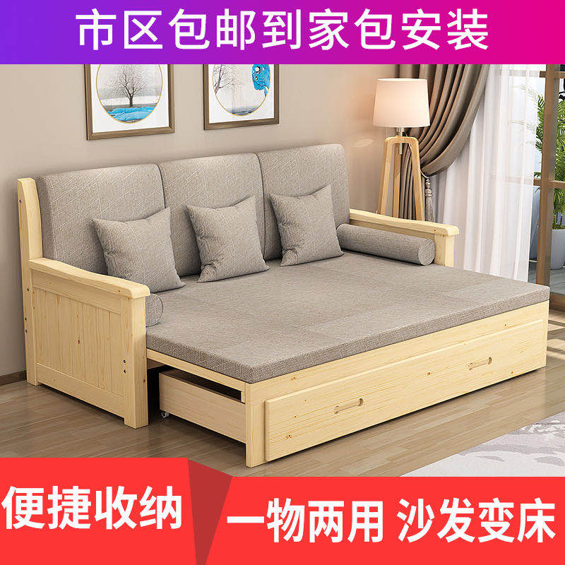 Sofa bed solid wood small apartment foldable telescopic bed with storage living room double multi-functional sitting and sleeping