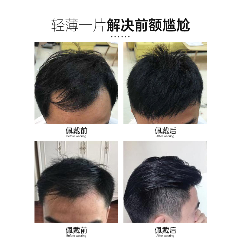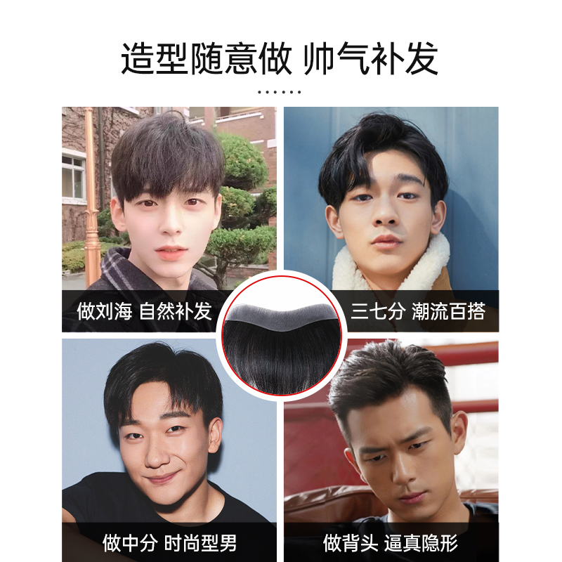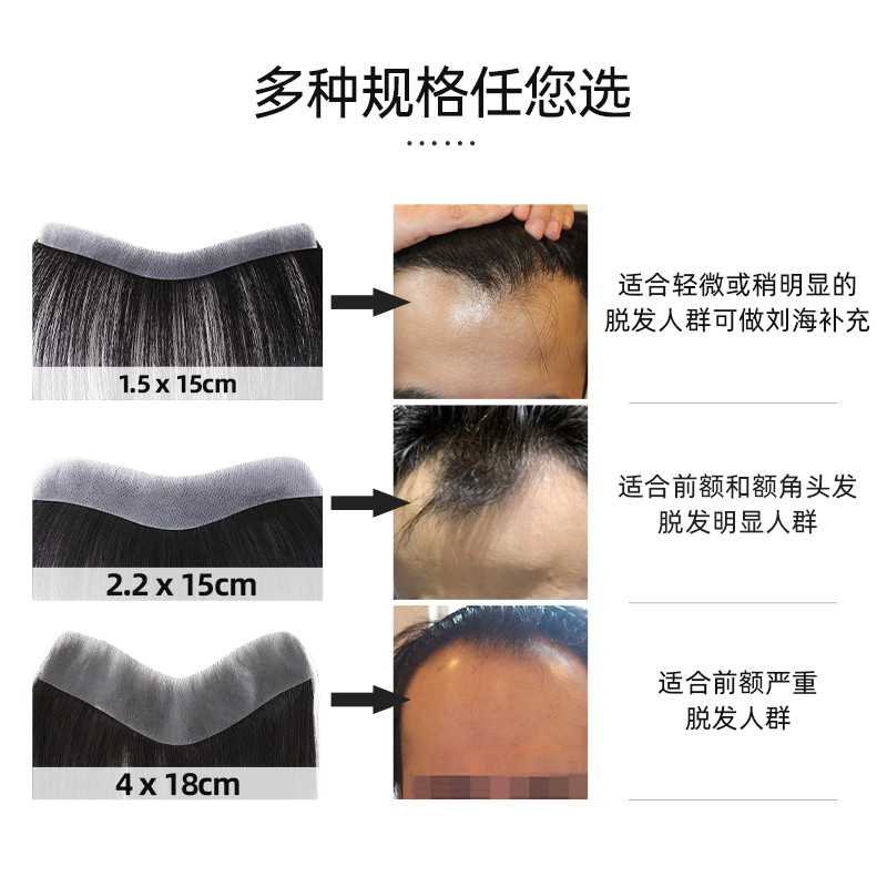 Hairline wig stickers men's forehead hairline fake bangs Real hair Invisible biological scalp M-type forehead hair piece