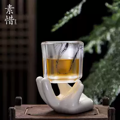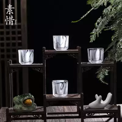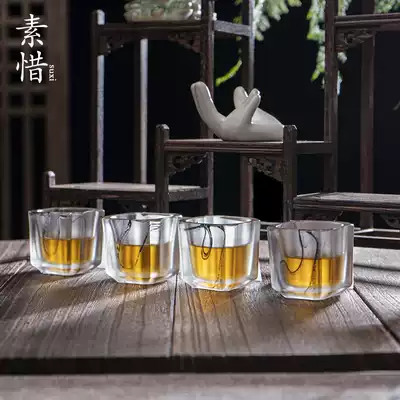 Sopi ink glass checkered cup small teacup single small portable small home simple retro Chinese style