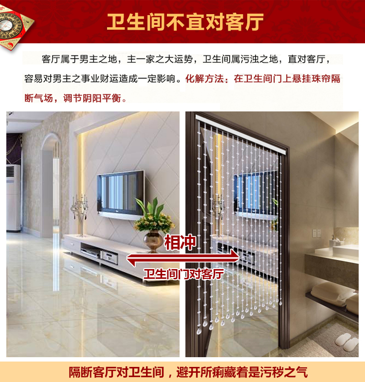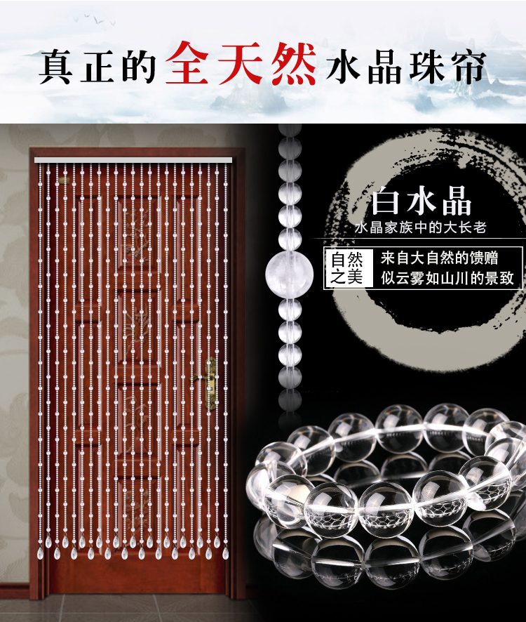 Natural crystal bead curtain partition living room Fengshui door curtain porch bathroom new household half door curtain free of punching