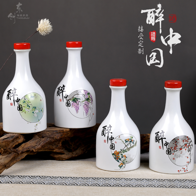 Jingdezhen Ceramic Creative bottle 1 pound Art Customized empty bottle seal gift household wine bottle