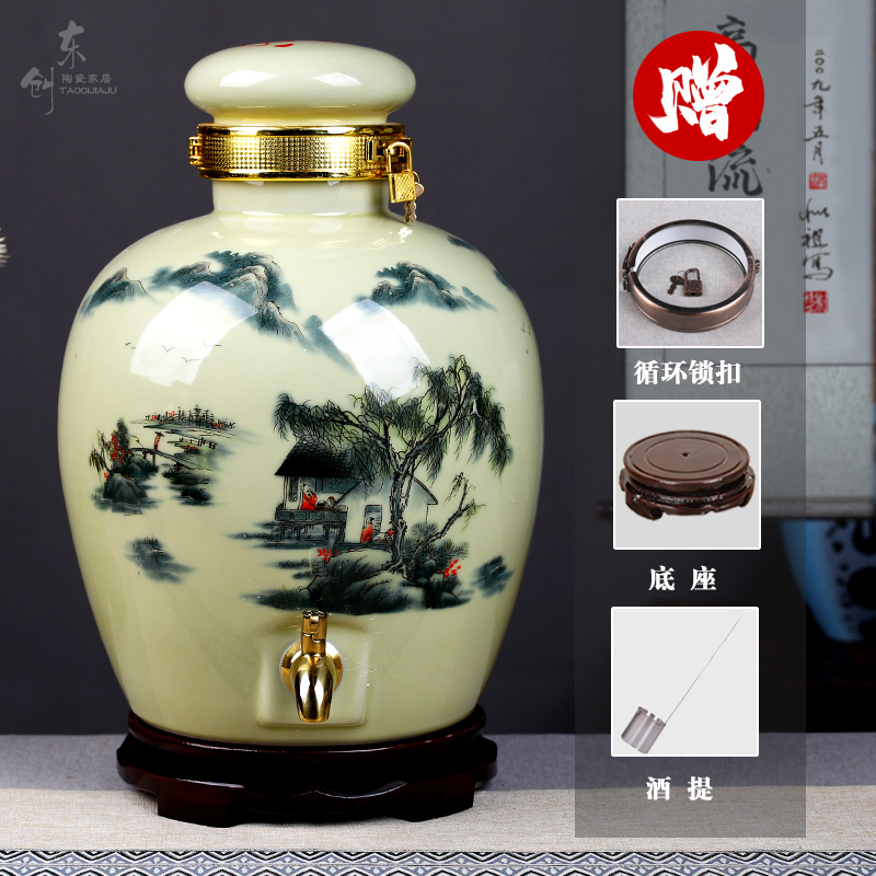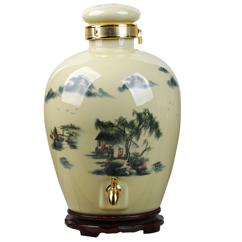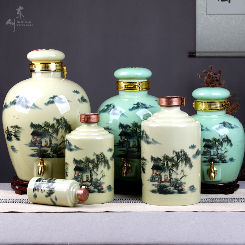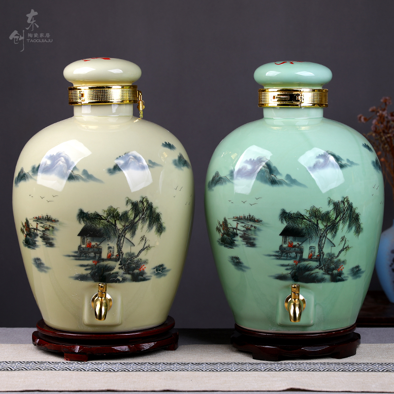 The wine barrel household sealed Jingde Ceramic bottle hollow bottle filled faucet wine canister cellar