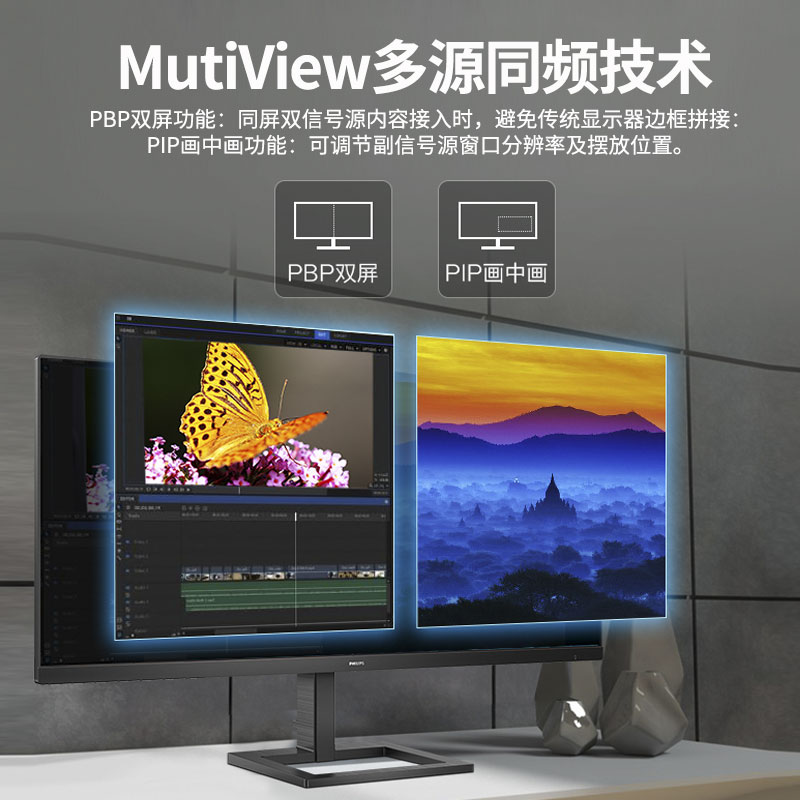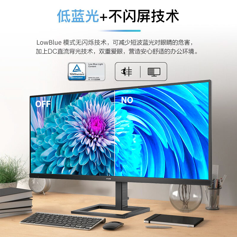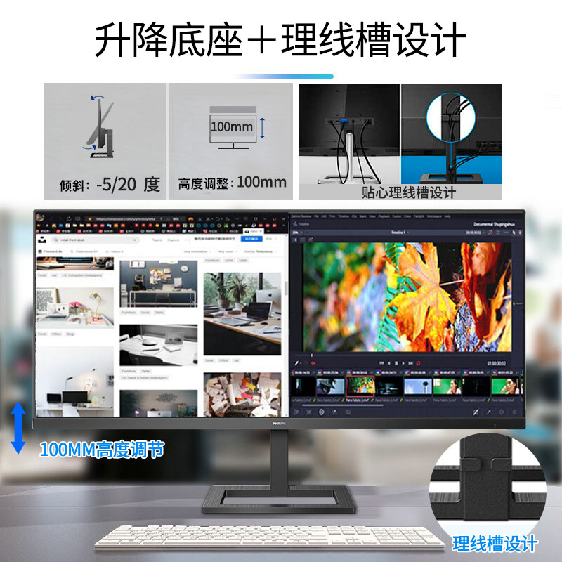 Philips 34 inch 21:9 with fish screen computer screen 2K HD IPS screen 75Hz Widescreen 342E2E LCD computer office design multi-source same screen lifting wide color gamut HDM