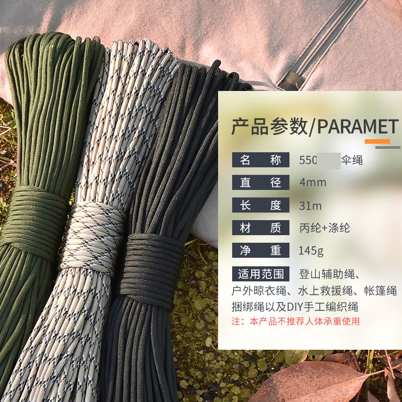 Outdoor equipment tent lanyard escape rope landing knitted parachute rope line camping mountaineering nine core 9 survival safety