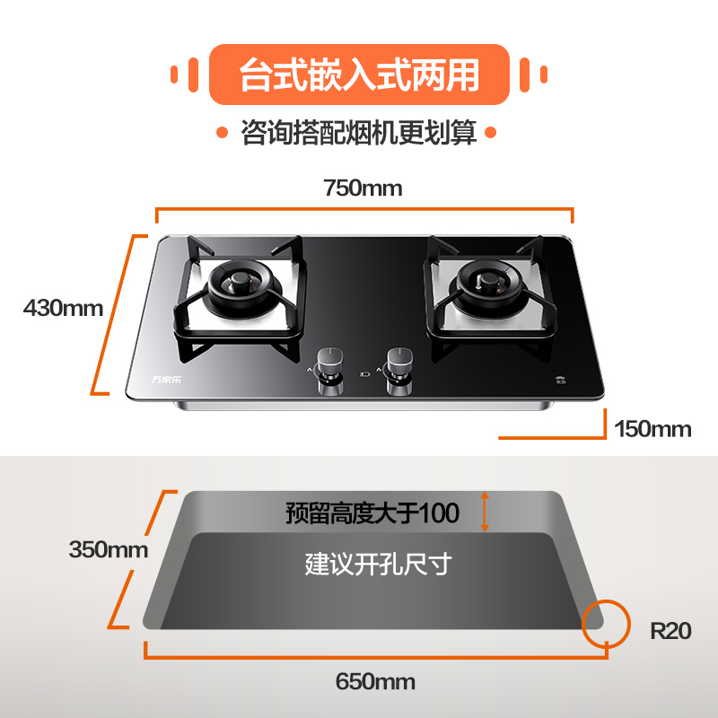 Wan Carrefour KV022SB Mengfire gas stove with household gas liquefied gas gas double-mouth gas stove table embedded