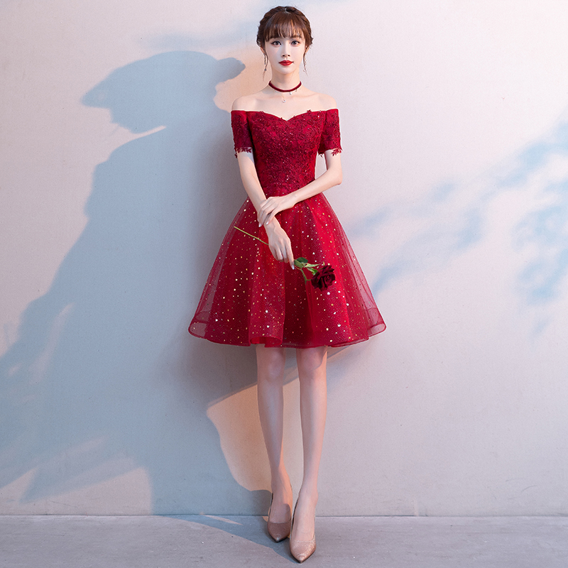Toast to the bride 2022 new wine red wedding engagement little pregnant woman with a short version of the evening gown