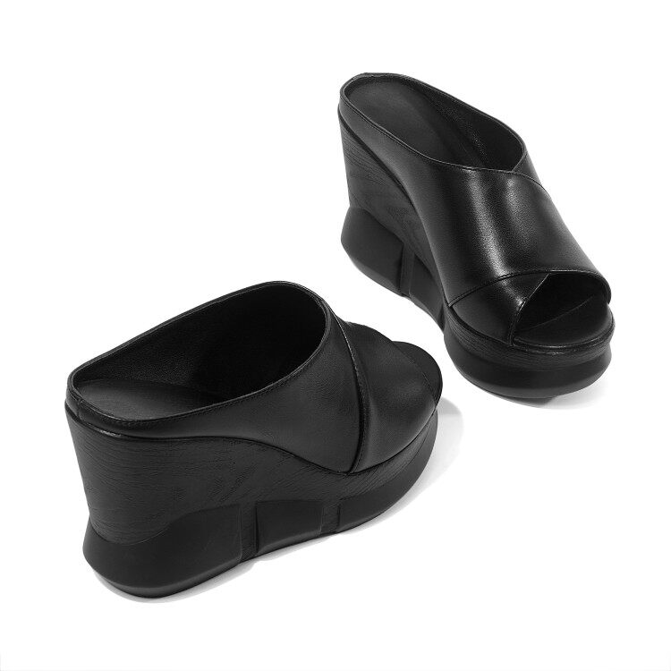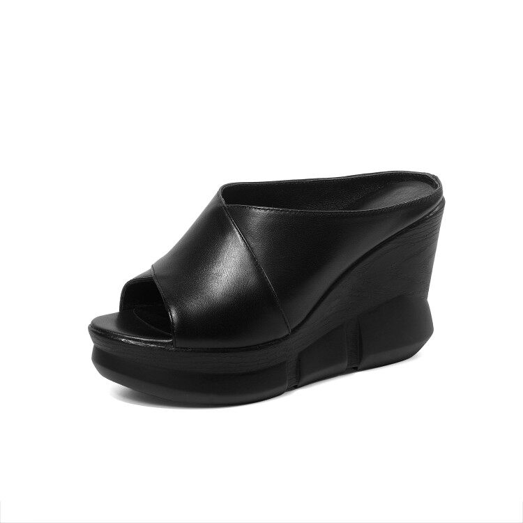 Wedge-shaped sandals women's outer wear 2022 spring and summer leather fashion one-word thongs thick heels high heels thick bottom soft leather women's shoes trend