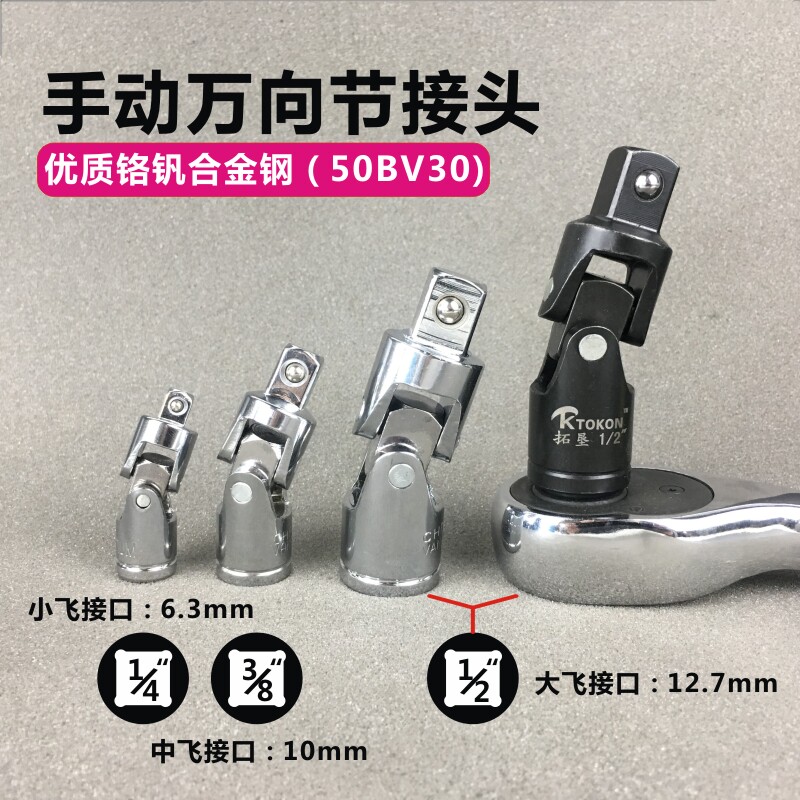1 4 inch universal joint (light) Manual version 3 8 inch universal joint (light) Manual version 1 2 inch cardan joint (silver light) Manual version 1 2 inch cardan joint (black light) Manual version 1 4 inch universal joint (heavy) (electric wind cannon) 3 8 inch universal joint (heavy industrial grade) (electric wind cannon) 3 8 inch universal joint (imported industrial grade) (electric wind cannon) 1 2 inch cardan joint (heavy industrial grade) electric commonly used small wind cannon 1 2 inch universal joint (imported industrial grade) common electric small wind cannon 3 4 inch universal joint (Heavy Duty) (Electric Wind Cannon) 1 inch Cardan Joint (Heavy) (Electric Wind Cannon) 1 2 inch Cardan Joint (Heavy) (Electric Wind Cannon)