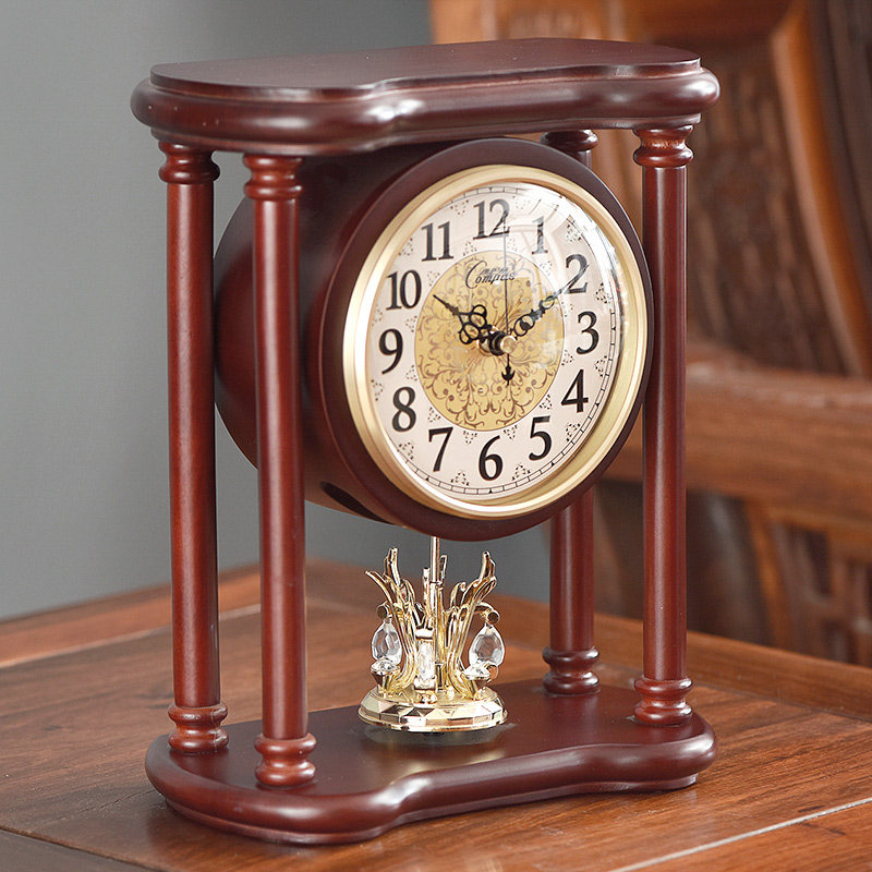 Conbasse Desktop Airwave Seat Clock Living Room Retro Solid Wood Clock Desk Electronic Watch Silent Book Room Bedroom Book House