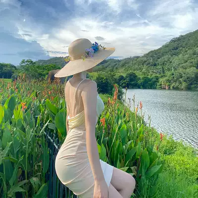 XIAOLI pearl suspender V-neck sexy dress 2021 new socialite temperament slim slim skirt female summer