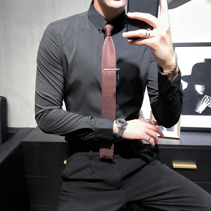 Business casual shirt male long sleeve Korean version trendy fit in a white shirt suit with a hitch bottom shirt