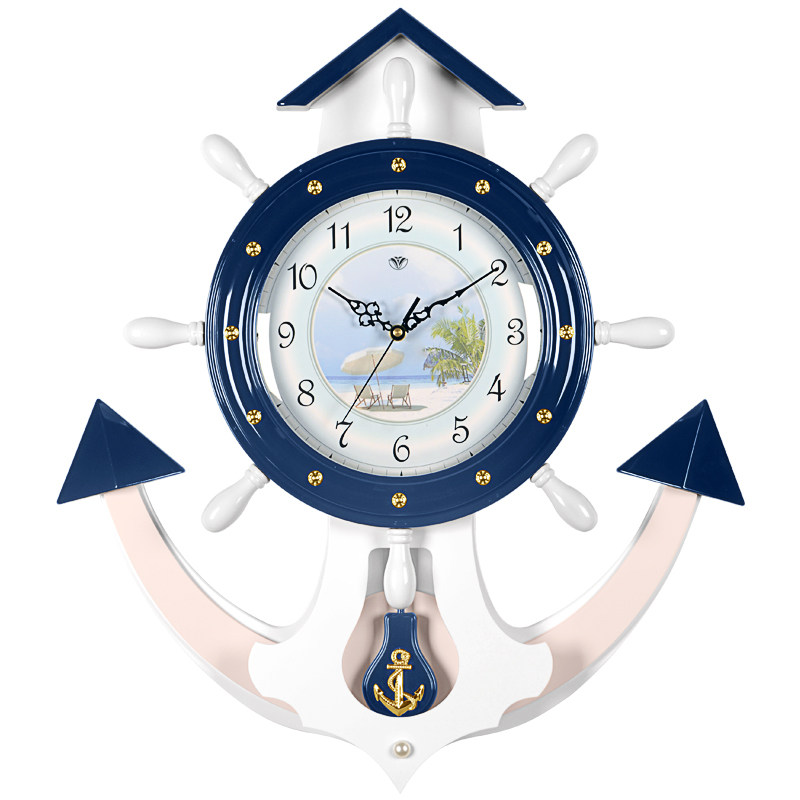 Hantime creative boat rudder solid wood hanging bell European style living room decoration mute pendulum clock bedroom light lavish quartz clock table HP40