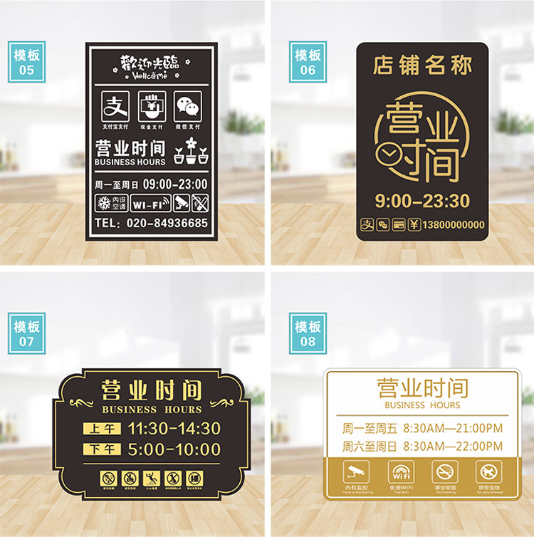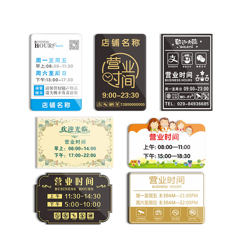 Custom business hours listed shopping mall shop door paste QR code brand creative cue brand glass store logo