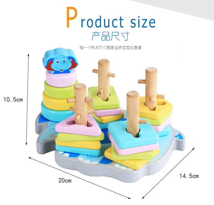 Wooden elephant geometric shape sets of columns pairing puzzle building blocks thinking 2-3-4 years old baby educational toys